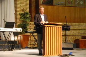 First impressions on arrival were formed by a large GDOP (Global Day of Prayer 2010) banner prominently positioned on the corner outside the building. organisers, participating speakers, presenters and audience members who were gathering within the building, however, presented quite a different picture. Wonderful how God works to enable His Truth to be promoted via all means. The venue certainly had no relevance to the message which issued from it; simply a set of walls enclosing a group of God’s people for a few hours.